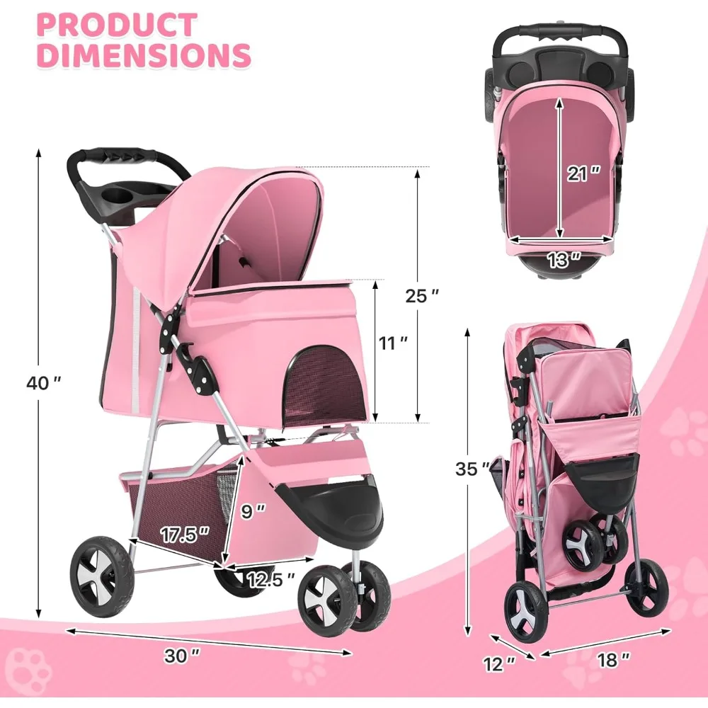 Pet Stroller - 3-Wheel, Foldable, Lightweight